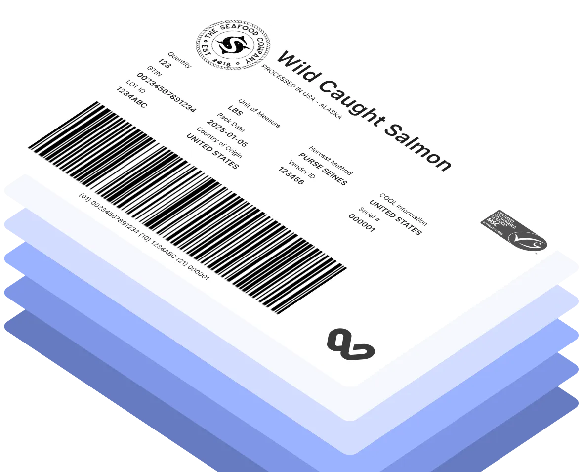 Create labels powered by traceability data, including GS1-128, SSCC, and PTI-compliant outputs. Standardize with shared templates, while supporting third-party printers and in-house systems.