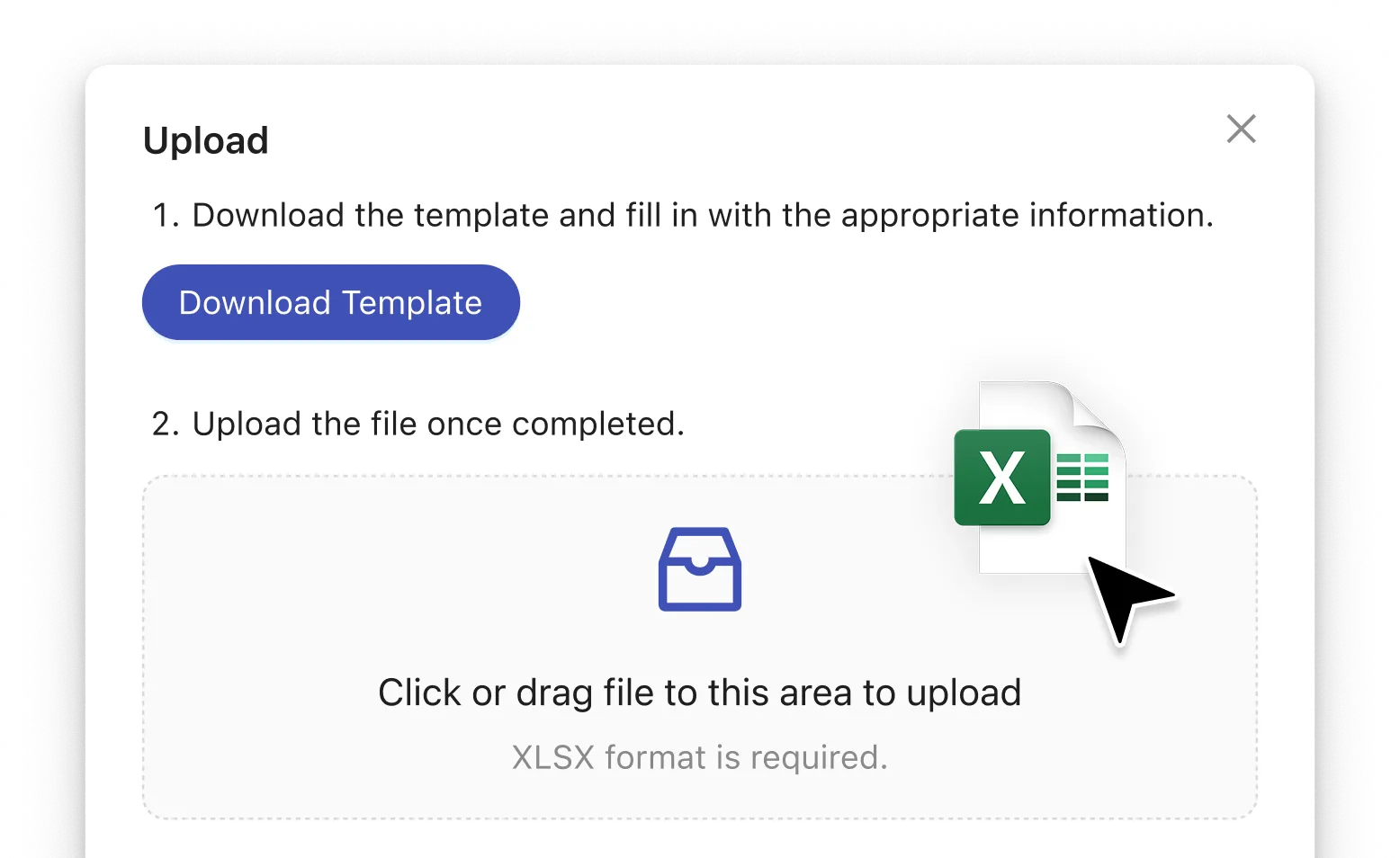 Create compliant traceability records in minutes. Upload data via Excel or CSV.